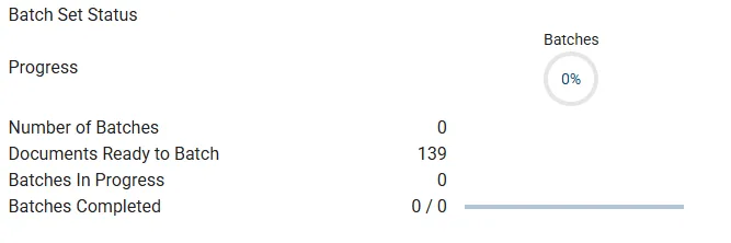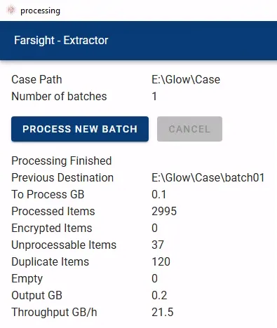 Once completed the Number of batches is increased to 1 and the button PROCESS NEW BATCH becomes available.