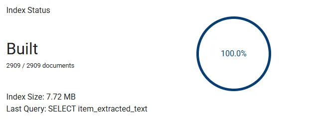 Section titled “Index Documents”The Workspace template comes with a pre-configured Search Index and associated Saved Query. Building the Search Index will make it operational unless you decided to run an automatic build during the import performed earlier on.