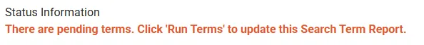 - The Search Term Report details page is opened. Terms are not yet defined and the buttons on the console remain unavailable for the moment.