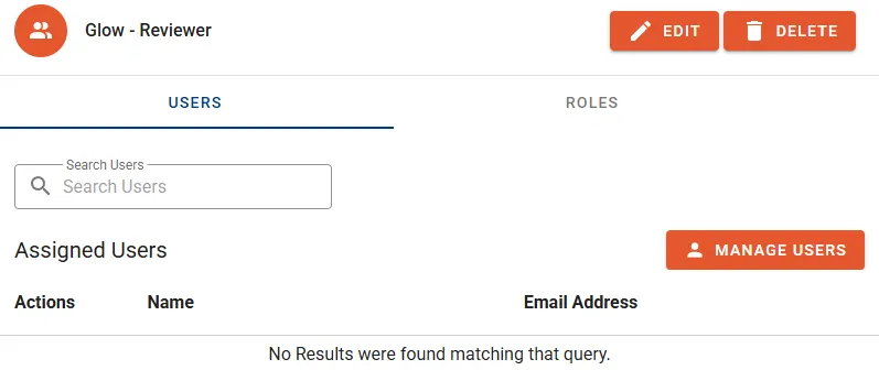 - Currently there are no Users assigned but this can be changed by clicking the button MANAGE USERS.