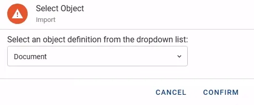 The Select Object dialog opens with Document pre-selected. Processed data are Documents, go ahead and press the button CONFIRM.