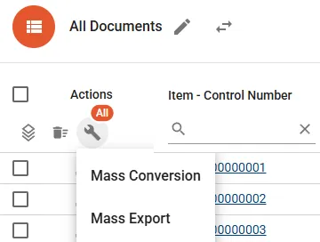 - Click the wrench icon in the Actions column and select Mass Conversion from the drop-down menu.