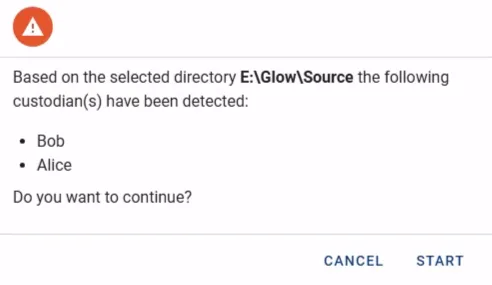 See the list of detected custodians and confirm to continue by pressing the START button.