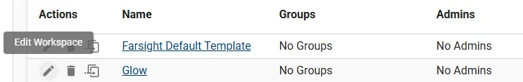 - Click the Edit icon next to your Workspace to enter the edit dialog.