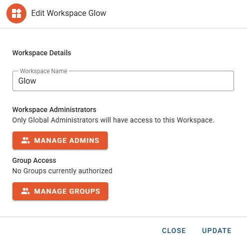 - Click the button UPDATE to close the Edit Workspace dialog.