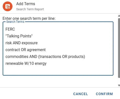 - This will open the Add Terms dialog where you can paste the list of terms.