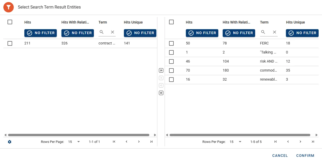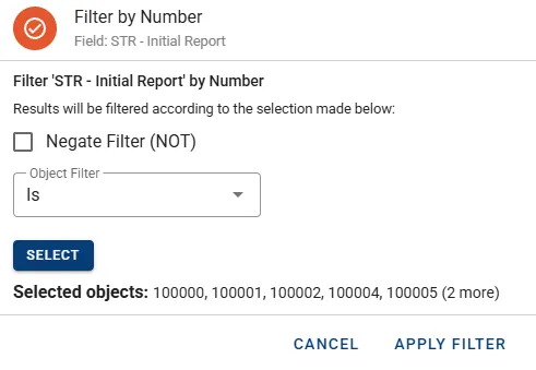 - Press the button CONFIRM to close this dialog and then press the button APPLY FILTER to close the other dialog.