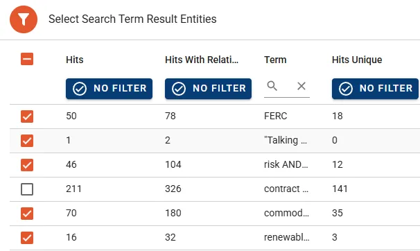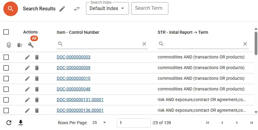 Section titled “Browse Resulting Documents”The Search Term Report created in the previous step was configured to flag the Documents. In this step the flag will be used to create a persistent query returning a selected sub set of the Documents.
