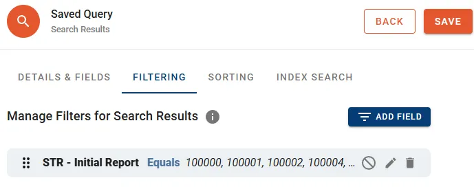 - Press the button ADD FIELD, filter for “str” and select STR - Initial Report (not the arrow).