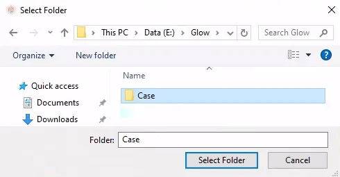 Select an empty folder to store the case data and confirm by pressing the button Select Folder.