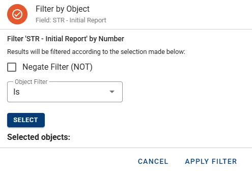 - In the dialog switch the Object Filter to Is and press the button SELECT.