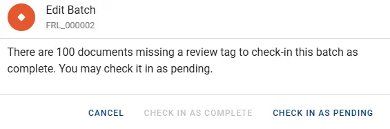 Section titled “Check in as pending”- Click Edit on the Batch to open the Edit Batch dialog.