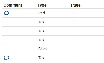 | Comment | A balloon icon indicates that the markup was commented. Click on the icon to see the comment. |