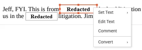 Section titled “Text selection”Use this method to redact specific words or phrases. You can also choose to redact all occurrences at once.