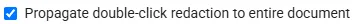 Double-click a word and the Redaction is applied to every occurrence within the Document in case propagation is enabled. With propagation disabled the single instance of the word is being redacted.