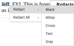 - Right-click on the selection to open the context menu and navigate to e.g. Redact > Black