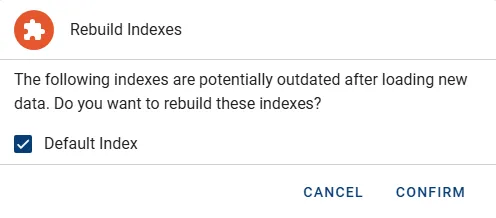 You are offered the option to rebuild any configured Search Indices once the import completes. Press the button CONFIRM to allow this or apply necessary changes.
