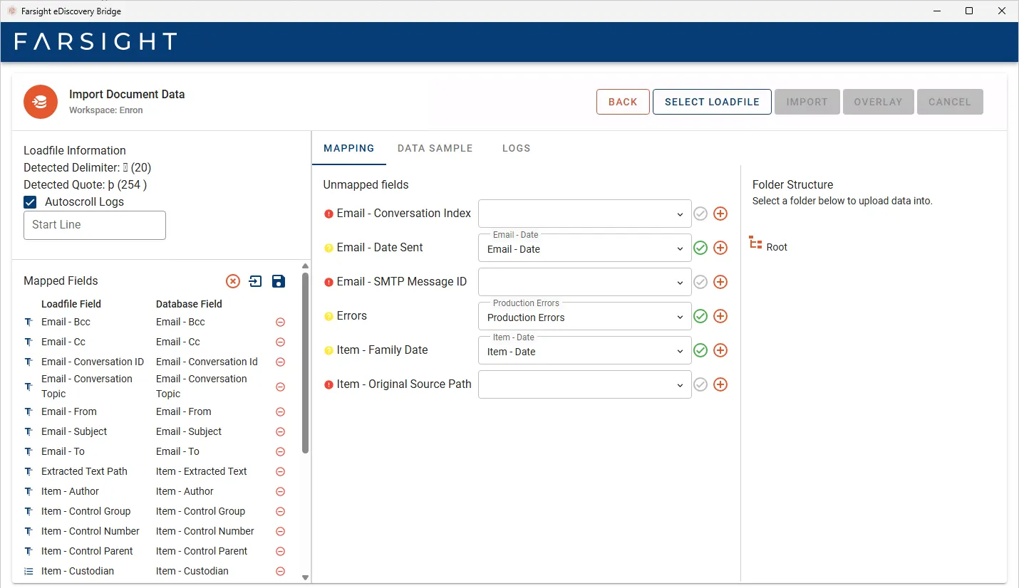 - MAPPING lists any unmapped Fields and the folder structure.