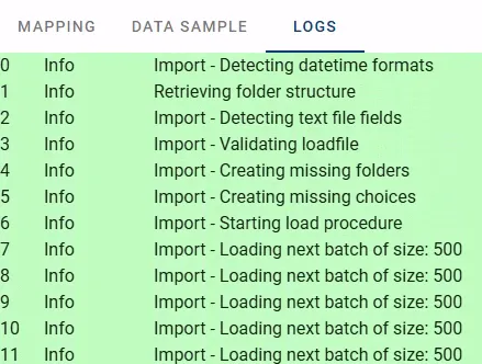 - LOGS is populated with progress information once the import process is started.