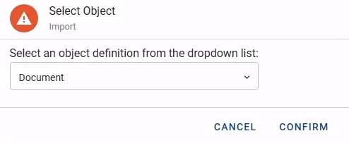 Select the Object Definition from the drop-down menu for which data is being loaded. Typically Document records is the most common type. Press the button CONFIRM and the main Import Data window is presented.