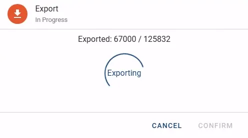 - The Export dialog is opened and shows progress information while the export is running.