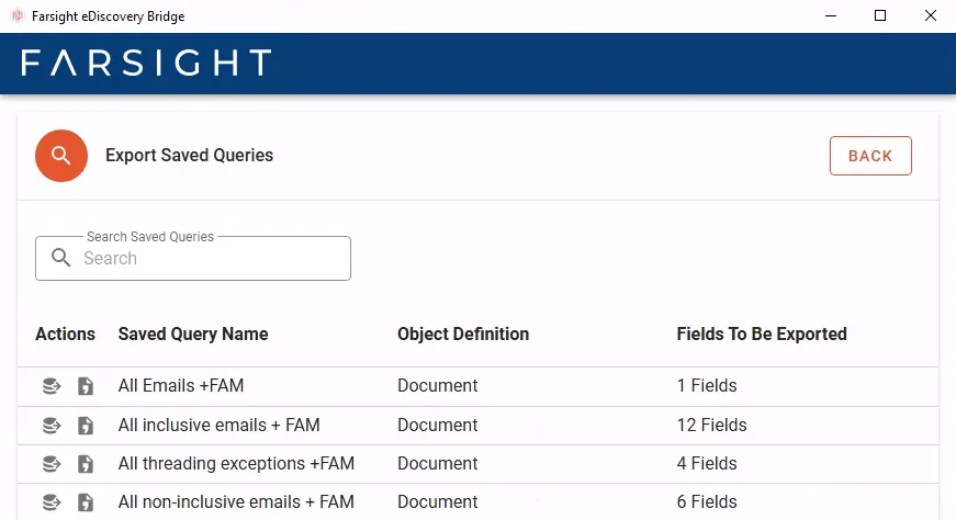 - Press the preferred export Action icon in front of the designated Saved Query.