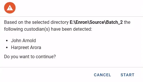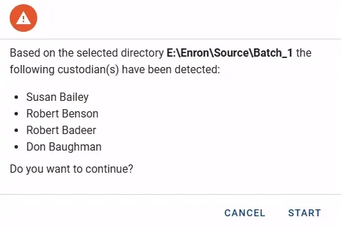 A popup window appears outlining all subdirectory names (which will be the custodian names).