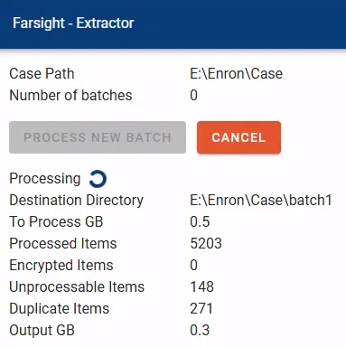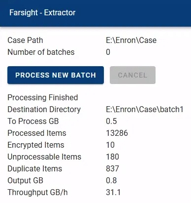 Once completed the button PROCESS NEW BATCH becomes available and final status messages are shown.