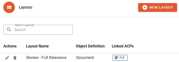Section titled “Actions”- Edit to change the name of the Layout or alter any properties.