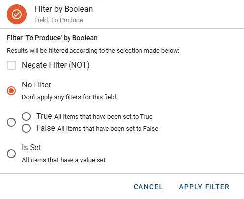 Section titled “Boolean”Fields of type Boolean present this dialog: