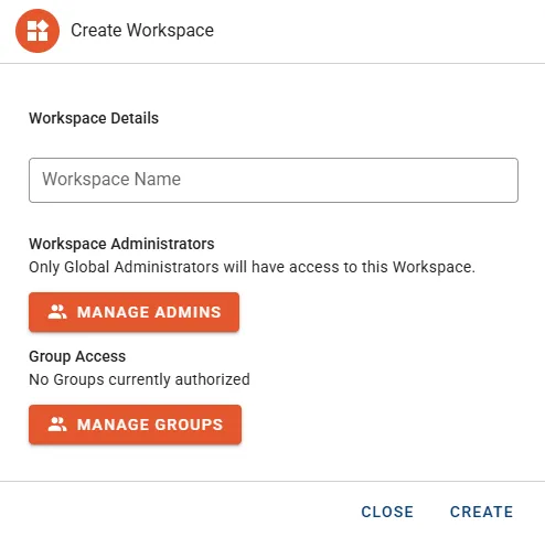 - Optional: Press the button MANAGE GROUPS to associate existing Groups with the Workspace.