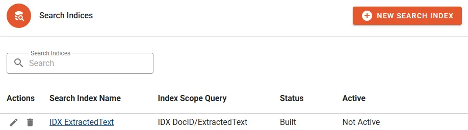 - Active indicates if the Search Index is exposed to regular Users (Active) or only visible to administrators (Not Active).