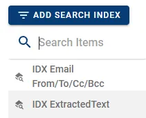 - Press the button ADD SEARCH INDEX and select the preferred Search Index.